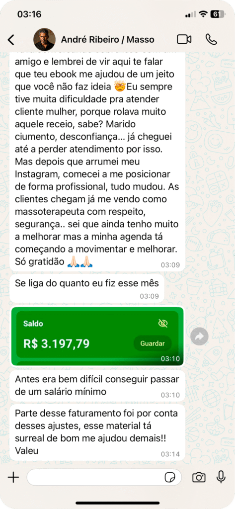 Se você tá cansada de ver outras massoterapeutas crescendo enquanto sua agenda continua vazia… Aqui está o material pra virar esse jogo e conquistar clientes todos os dias pelo Instagram.